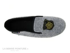 Cette charentaise Homme est en textile molletonné gris avec un écusson sur le dessus et l’inscription « British Spirit ».