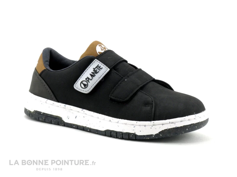 Les baskets enfant Alma Planète Zaki noir/camel, des baskets garçon pas chères et fabriquées avec des matières recyclées et recyclables !