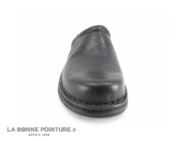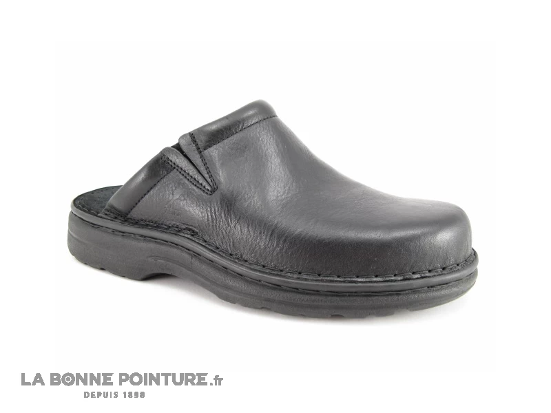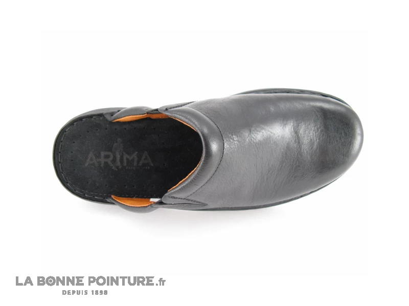 Dessus des sabots Arima Douma au bout arrondi en cuir lisse noir.
