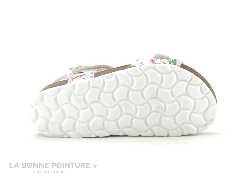 La semelle de marche des nu-pieds fille est légère, en liège sur une base blanche.