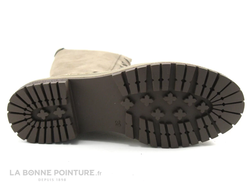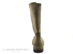 Cette botte Femme à pointe arrondie est beige taupe, avec un bel aspect velouté.