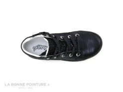 La semelle de marche des chaussures montantes fille Bellamy est noire avec de fines paillettes bleues et argentées.