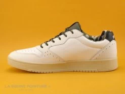 Cette basket basse Bervely Hills mélange des parties blanches et blanc cassé, avec la languette kaki foncé.