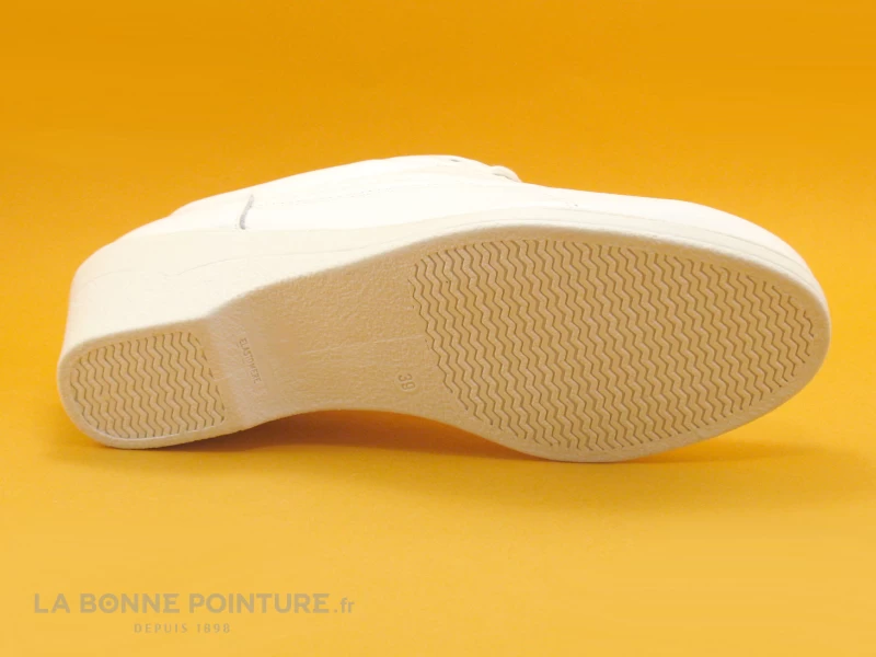 Les chaussures Umo Lucie by Bopy en cuir blanc à semelle compensée, des baskets Femme grand confort à un très bon rapport qualité / prix !
