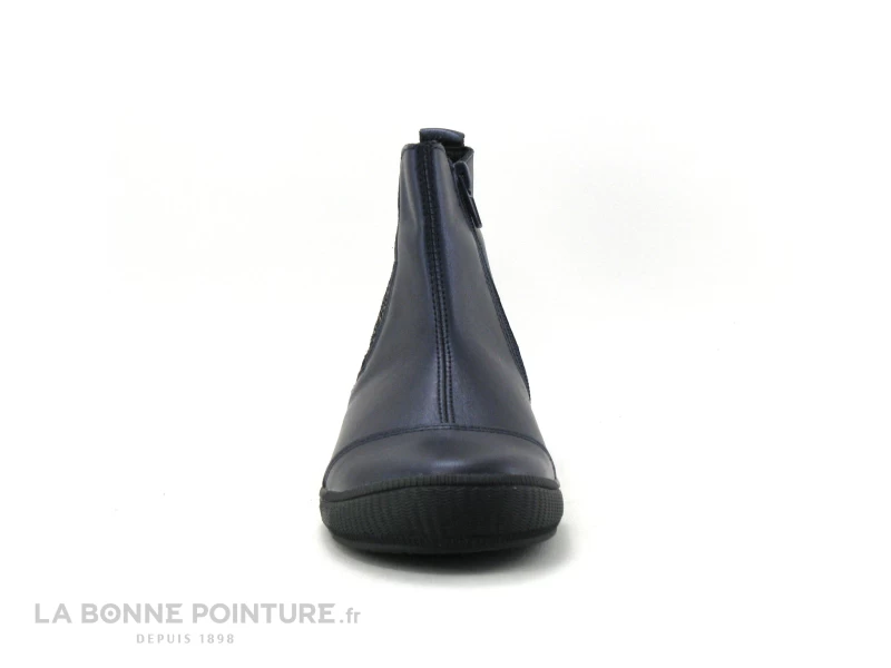 Un élastique bleu marine sur le côté externe de la bottine Bopy Siroker permet d’être plus à l’aise dans la chaussure, orné d’un petit coeur en relief cerclé d’argent.