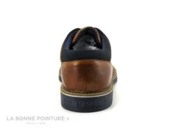 Le lacet arrondi bleu marine traverse 3 oeillets pour fermer les derbis, et la marque Bugatti s’affiche sur le cĂ´tĂ© de la chaussure, gravĂ©e dans le cuir.