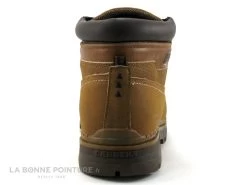 Cette chaussure montante Homme est en simili cuir marron clair nuancé, à l’aspect velouté.