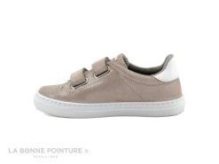 Cette basket de ville fille Cienta 8006 est en cuir velouté rose métallisé, avec un peu de cuir lisse blanc à l’arrière.