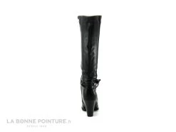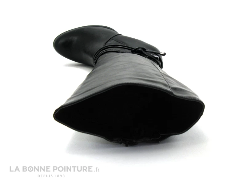 Cette longue botte Ă talon est en simili cuir noir, habillĂ©e de liens fantaisie autour de la cheville. Un Ă©lastique noir en haut de la botte donne de l’aisance dans la chaussure femme Dees Shoes.