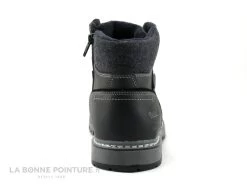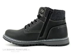 Cette chaussure montante Homme est noir mat, avec une partie en molleton gris foncé sur le haut, confortablement rembourrée.