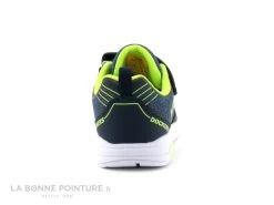 Ces sneakers garçon sont en textile et matières synthétiques bleu marine, avec du noir sur le devant et l’intérieur jaune fluo.
