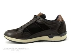Cette basket Homme Fluchos Emory est en cuir marron foncé, avec des empiècements lisses et veloutés. Il y a aussi un peu de marron camel à l’arrière et sur la languette des sneakers Fluchos.