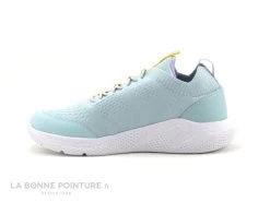 Cette basket fille sans lacet Geox Respira est en textile maille et matières synthétiques vert d’eau, avec un peu de jaune et de violet.