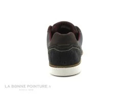 Cette chaussure Homme combine un cuir lisse et un cuir velouté bleu marine, avec un peu de marron foncé sur le contrefort.
