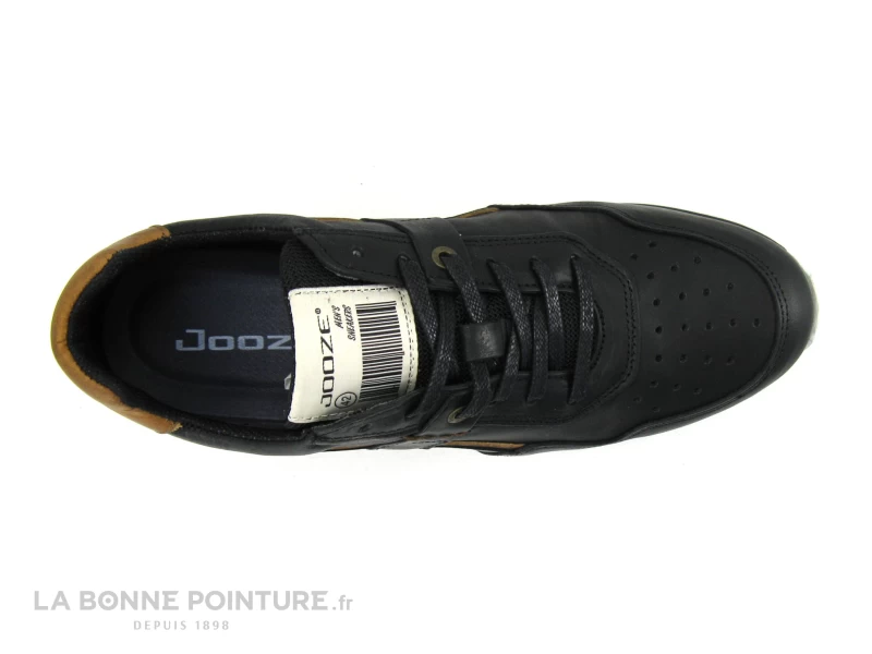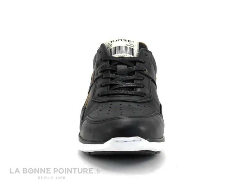 Cette belle basket de ville Homme Jooze J5601 est principalement en cuir lisse noir, avec un peu de marron camel sur la tige.