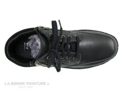 Cette chaussure montante Homme Josef Seibel adaptée pieds larges est en cuir noir aspect grainé, avec une partie en nubuck noir autour de la cheville.