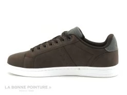 Cette basket de ville Homme Kappa Logo Amber est en simili cuir marron foncé, avec la languette en textile marron et grise.