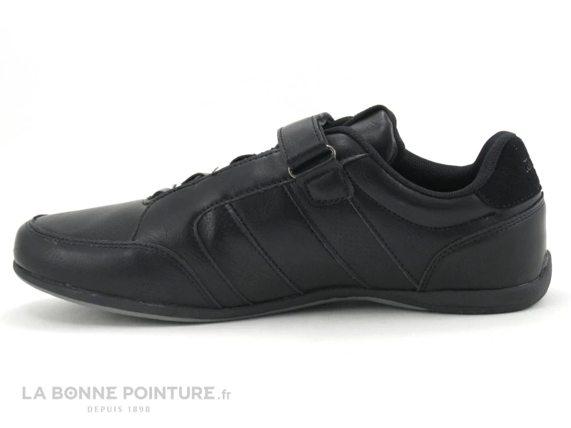 Cette basket de ville Homme est en simili cuir noir, avec des parties lisses et finement poinçonnées.