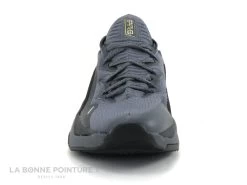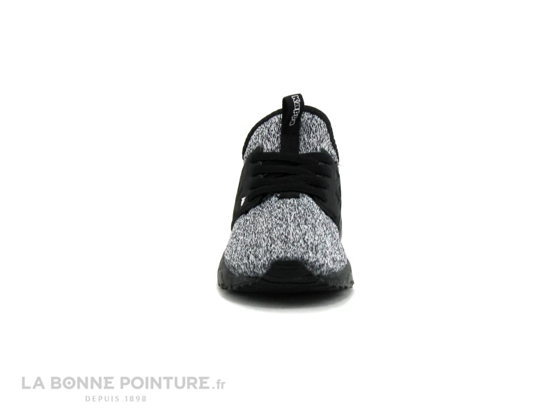 Cette chaussure enfant est en textile et matières synthétiques noir et gris chiné.