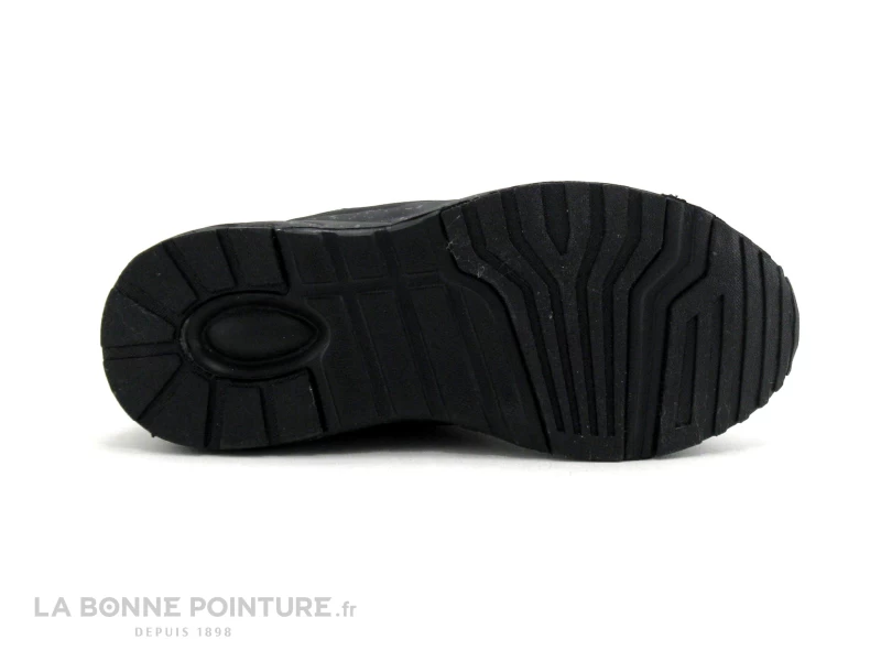 La semelle de marche des chaussures est noire mouchetée de gris, souple et toute légère.