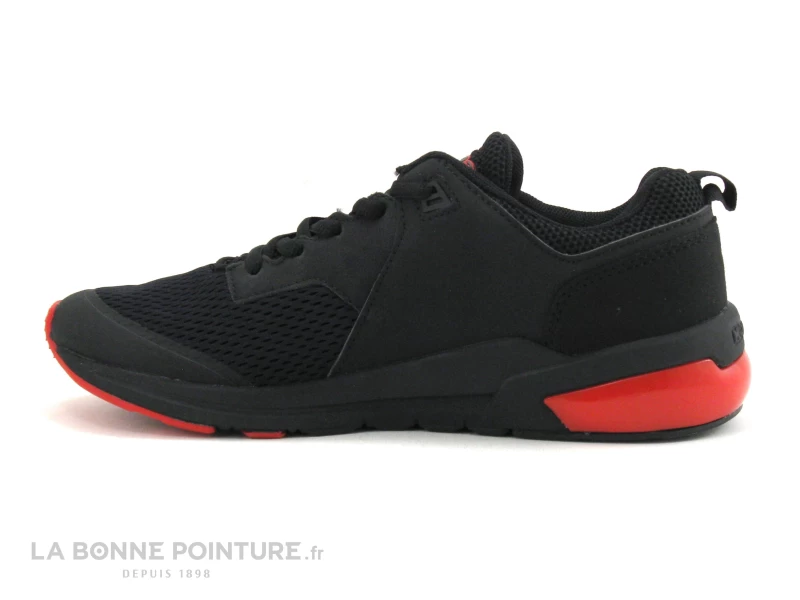 Cette basket enfant / juniors est en tissu maille et matières synthétiques résistantes noirs, avec une touche de rouge.