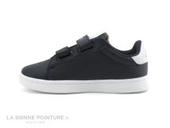 Ces baskets enfant sont en simili cuir bleu marine, avec un peu de blanc à l’arrière et sur la languette.