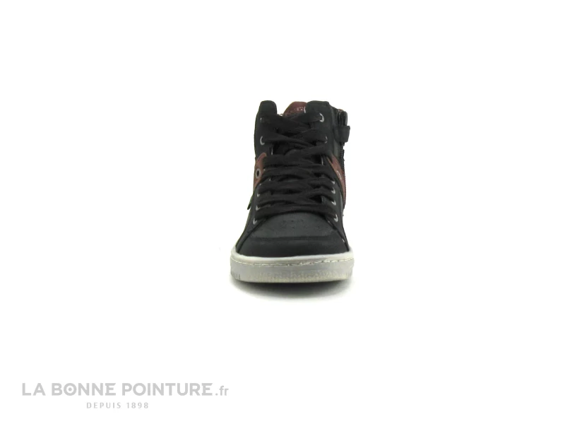 Ce bottillon fille ou garçon est en simili cuir noir et bordeaux, avec une semelle flexible et ultra légère.