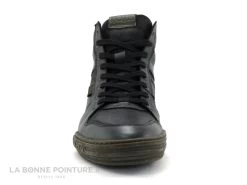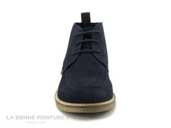 Le logo Kickers gris-bleuté s’affiche sur la bride de serrage de la cheville.