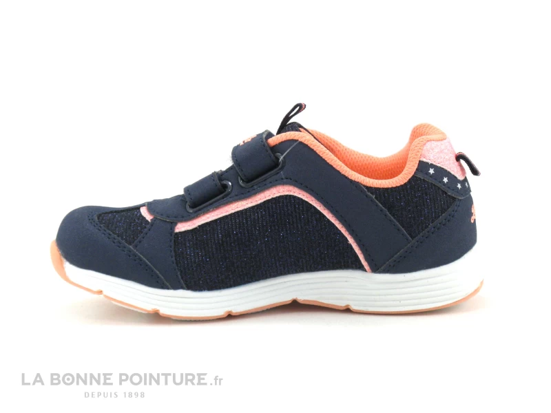 Cette sneakers leds fille Lico est bleu marine et rose, avec des parties veloutées et pailletées.