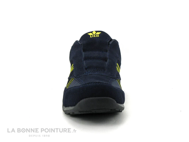 Cette basket slip on Homme Lico Ensio 540545 est principalement en cuir velouté bleu marine, avec des parties en nylon sur les côtés et à l’arrière et un peu de jaune.