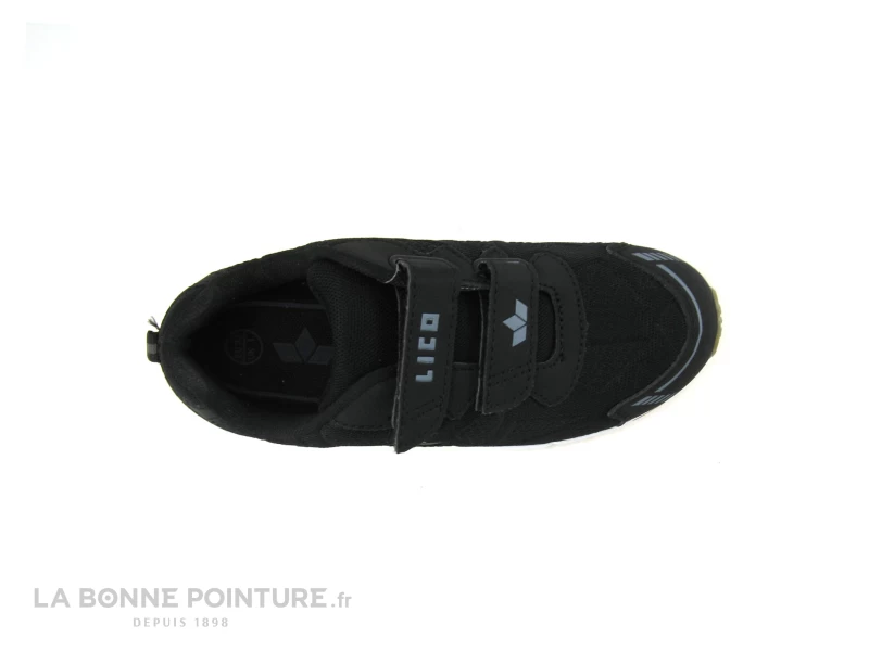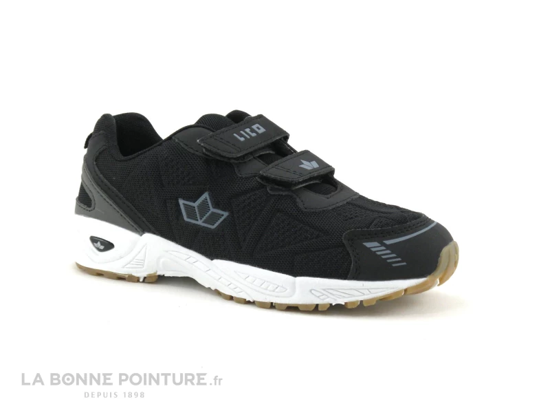 Cette basket enfant Lico est en textile et matières synthétiques résistantes noirs, avec un peu de gris à l’arrière.