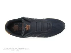 Cette basket mode Homme Lico Marek mélange textile et simili cuir bleu marine, avec un peu de marron camel à l’arrière.