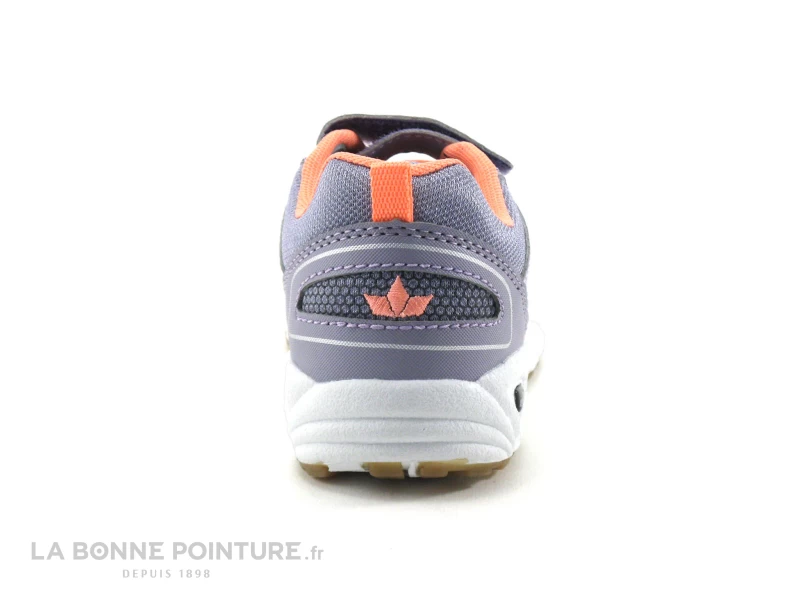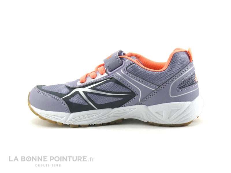 Cette chaussure fille Lico est en textile et matières synthétiques lilas et rose/orange (saumon), avec un peu de gris foncé sur les côtés.