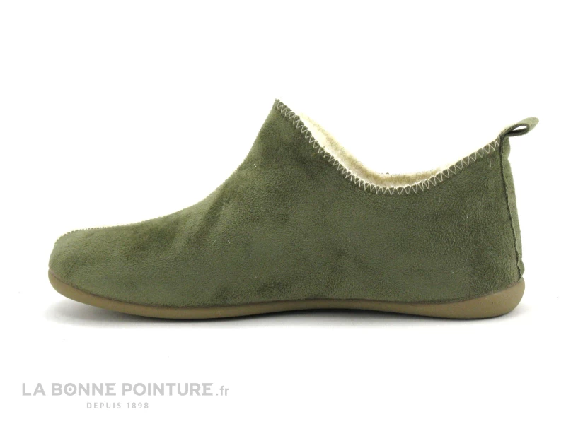 L’intĂ©rieur du chausson kaki Maison de l’Espadrille 6030 est en pure laine vierge, pour un environnement douillet et bien chaud.