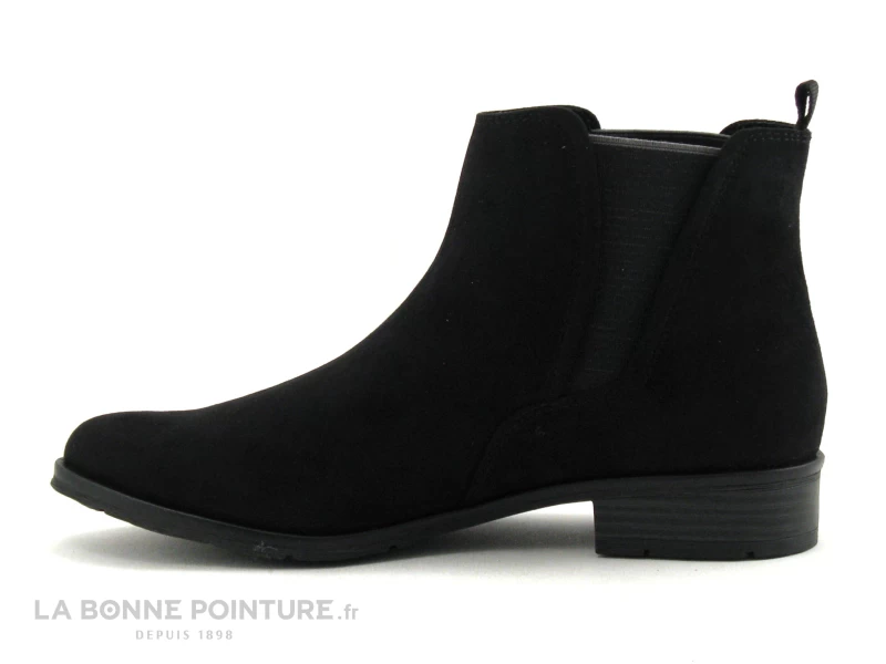 Les 2 élastiques sur les côtés permettent d’enfiler facilement la bottine Chelsea noire Marco Tozzi 25321.
