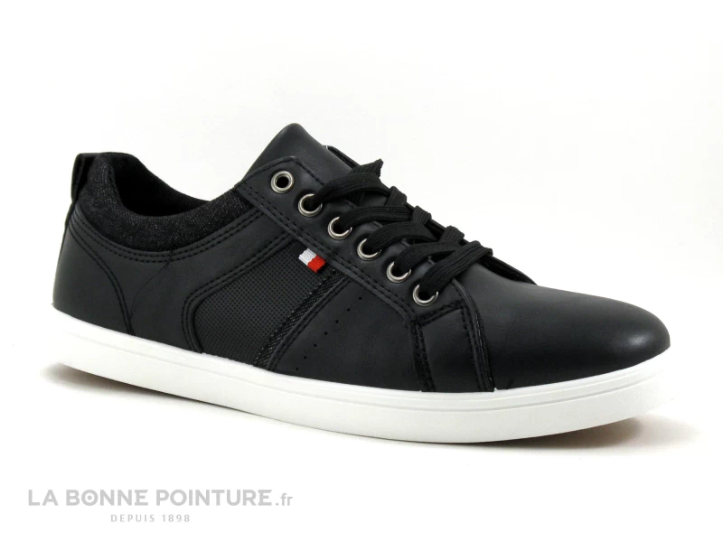 Ces baskets basses pas chères Homme Moza-X sont en simili cuir noir, avec le tour de cheville façon jeans noir.