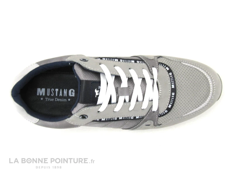 Le lacet contraste en blanc, il traverse 6 oeillets pour fermer la chaussure Mustang Homme.