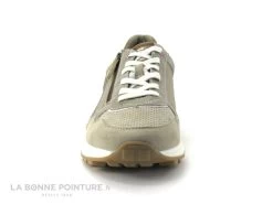 Cette basket basse Homme Mustang est beige taupe, avec des parties lisses et nervurées et d’autres veloutées et poinçonnées.