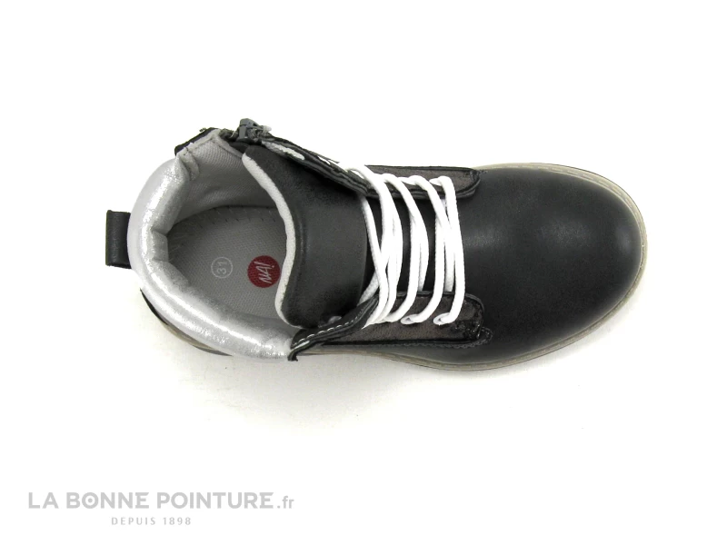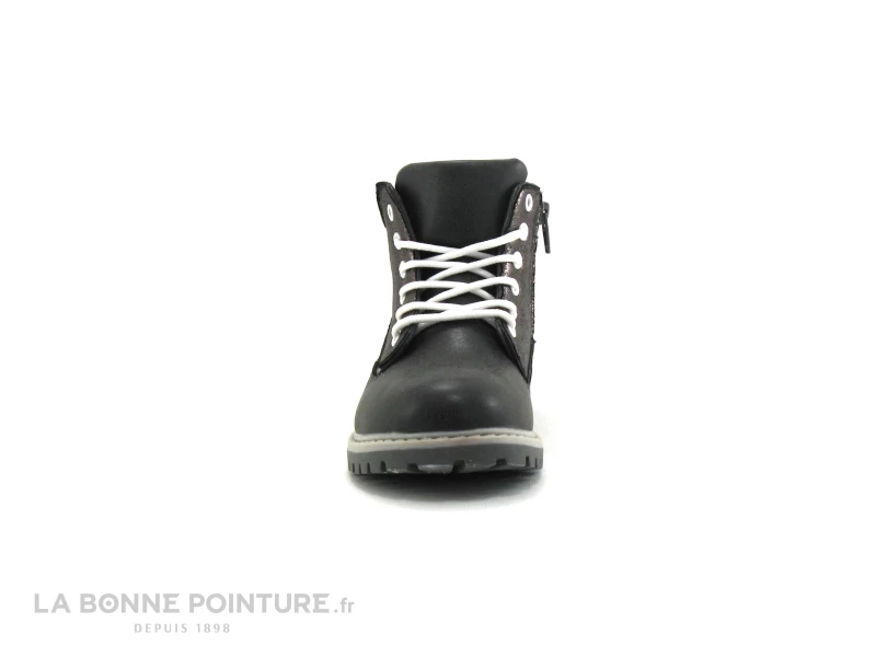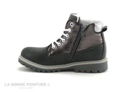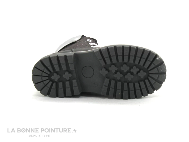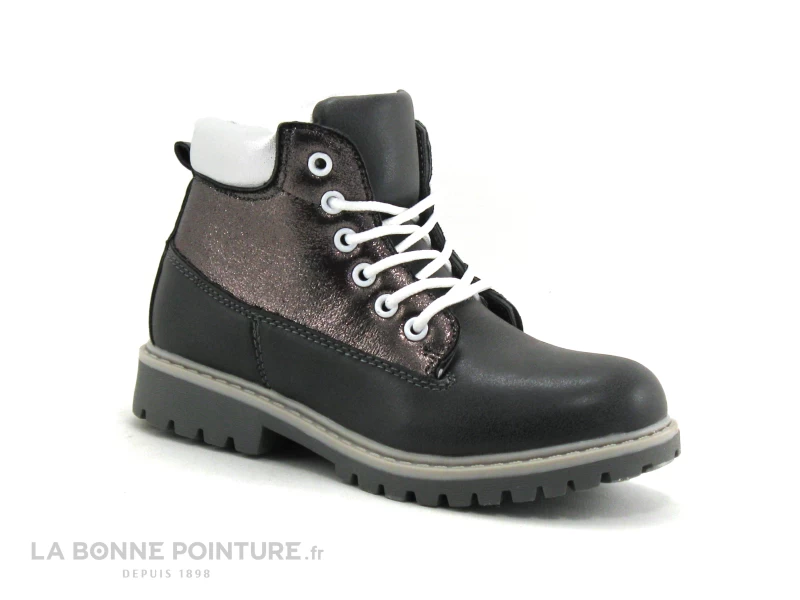 Ce bottillon fille est gris nuancé, avec des parties métallisées et argentées.