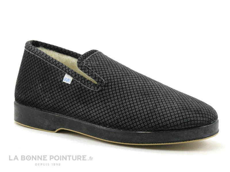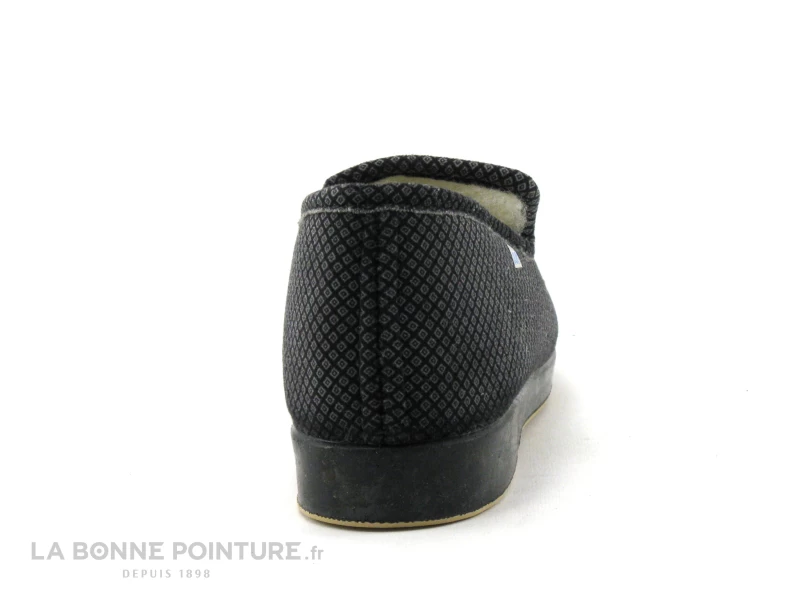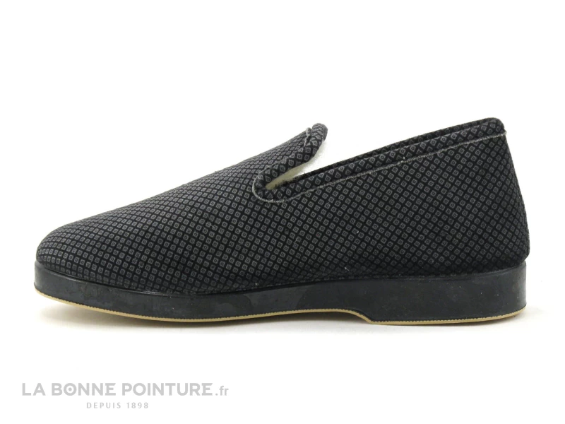 Ce chausson traditionnel Homme est en velours à petit carreaux noir et gris.