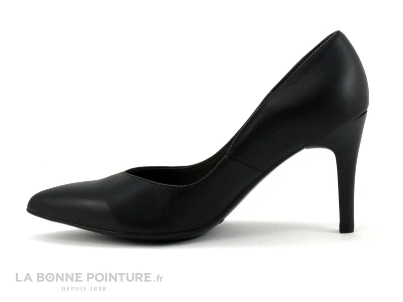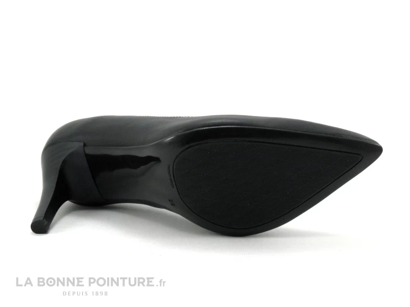 Ces escarpins pointus Patricia Miller sont en cuir lisse noir, avec une tige bien décolletée qui différencie la chaussure.