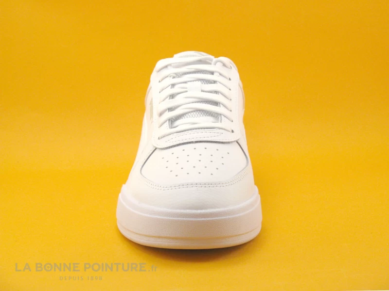 Cette basket de ville Homme Puma Caven est blanche aspect grainé, avec la languette en textile.