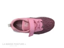Cette basket rose fille Puma Comet mélange textile maille et matières synthétiques rose et noir.