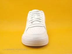 Habillée de bandes blanches sur les côtés, la chaussure Puma possède une petite languette rouge à l’arrière, qui aide à enfiler la chaussure.