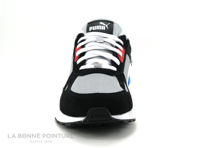 Cette basket de ville Homme Puma Graviton mélange les couleurs et les matières, avec des tons mode et faciles à porter : du noir et du gris avec un peu de rouge et de bleu turquoise.