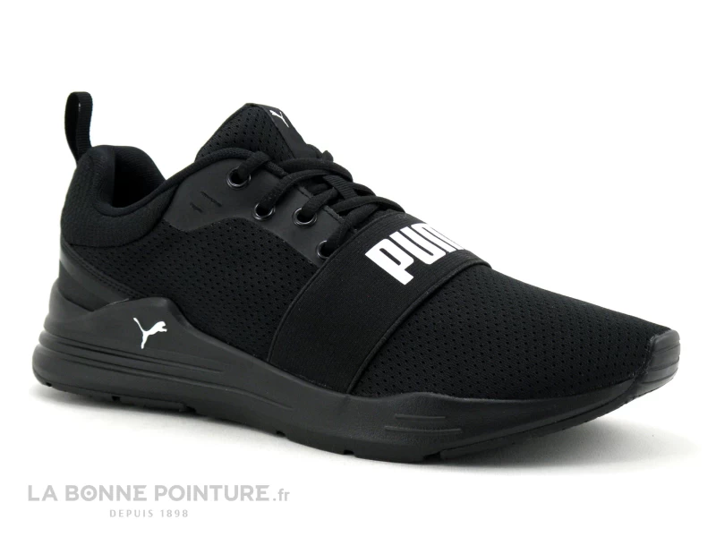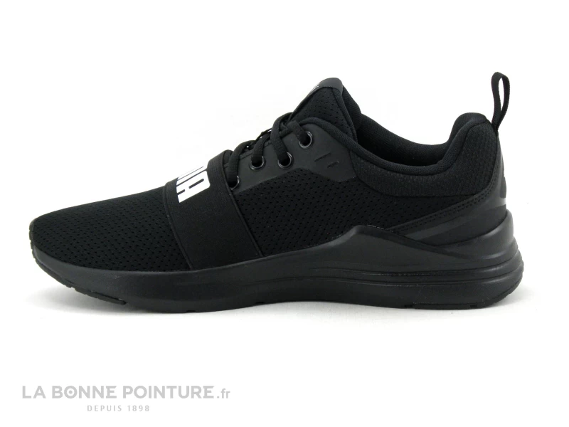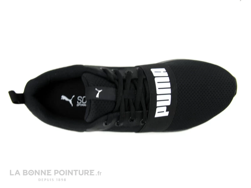 Cette chaussure de sport Homme Puma est majoritairement en maille respirante noire, avec une petite languette à l’arrière qui aide à enfiler et retirer aisément la basket.