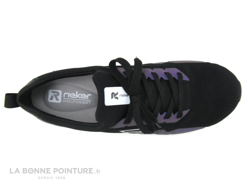 L’intérieur des baskets Rieker Revolution 07802-00 est en textile, avec semelle moelleuse et amovible.