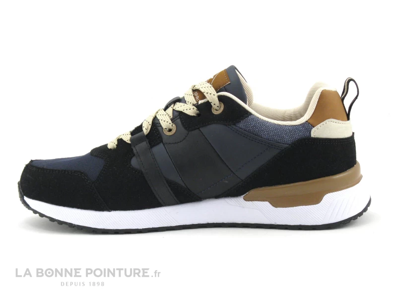 Cette basket basse Homme RoadSign Australia mélange textile et simili cuir noir, bleu marine, beige et camel.