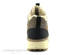 Cette chaussure montante Route 66 Piloti est marron camel, avec les extrémités noires et le tour de cheville imprimé chevron.