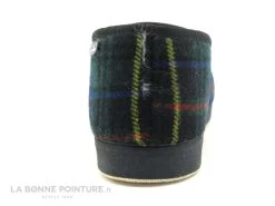 Cette pantoufle Messieurs est en tissus écossais noir et vert, avec une touche de rouge, de bleu et de jaune.